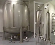 The entire filtration and dispensing system including both tanks are sterilised using pure steam.